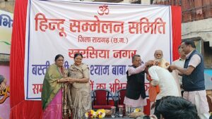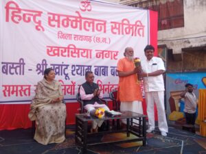 हिंदू सम्मेलन समिति के तत्वाधान में आयोजित भव्य हिंदू सम्मेलन का शुभारंभ मुख्यअतिथि श्रीमती अनीता अग्रवाल, मुख्यवक्ता श्रीगोपाल यादव एवं महंत त्रिवेणी दासजी और छाया विधायक महेश साहू, नगर पालिका अध्यक्ष कमल गर्ग, भाजपा नगर मंडल अध्यक्ष विजय शर्मा, नपा उपाध्यक्ष अवधनारायण सोनी तथा राष्ट्रीय स्वयंसेवक संघ के खरसिया कार्यवाहक अमित चंदवानी ने दीप प्रज्वलन के साथ किया। कार्यक्रम को ईश्वर शर्मा और राजेश अग्रवाल द्वारा सुमधुर भजनों से सजाया गया था, वहीं ईश्वर शर्मा द्वारा गये गीत हारे के सहारे ने समा बांध दिया।