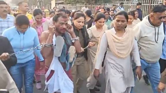 गिरफ्तारी के बाद आरोपी को हेमू कालानी चौक से चक्रधर नगर थाने तक जूते-चप्पलों की माला पहनाकर जुलूस में निकाला गया, जहां आरोपी रास्ते भर कान पकड़कर माफी मांगता नजर आया। इस सनसनीखेज मामले में पुलिस अब तक पांच आरोपियों को गिरफ्तार कर जेल भेज चुकी है, जबकि एक आरोपी अभी फरार है, जिसकी तलाश तेज कर दी गई है।