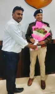 पुष्प गुच्छ भेंट कर नव पदस्थ एसपी का किया गया औपचारिक एवं आत्मीय स्वागत