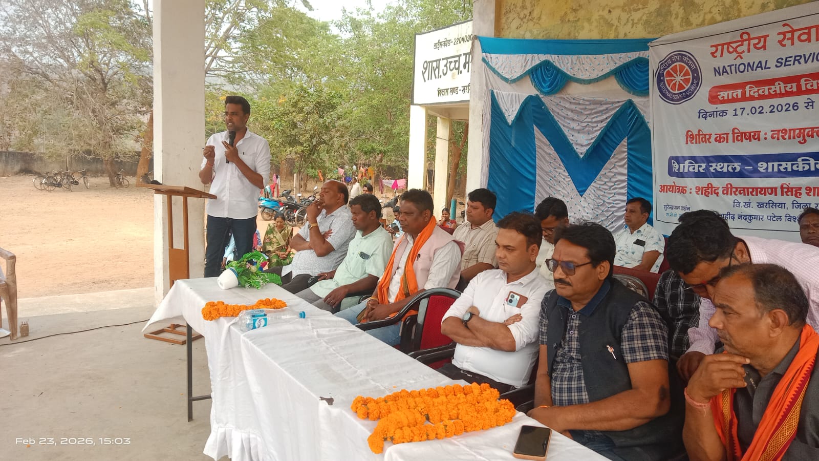 रायगढ़/बरगढ़। स्थानीय हायर सेकेंडरी स्कूल बरगढ़ में आयोजित राष्ट्रीय सेवा योजना (NSS) के सात दिवसीय विशेष शिविर के दौरान एक गरिमामयी कार्यक्रम संपन्न हुआ। इस वर्ष शिविर का मुख्य विषय “नशा मुक्त समाज के लिए युवा” रखा गया है, जिसके माध्यम से स्वयंसेवकों को समाज सेवा और राष्ट्र निर्माण के प्रति जागरूक किया जा रहा है।